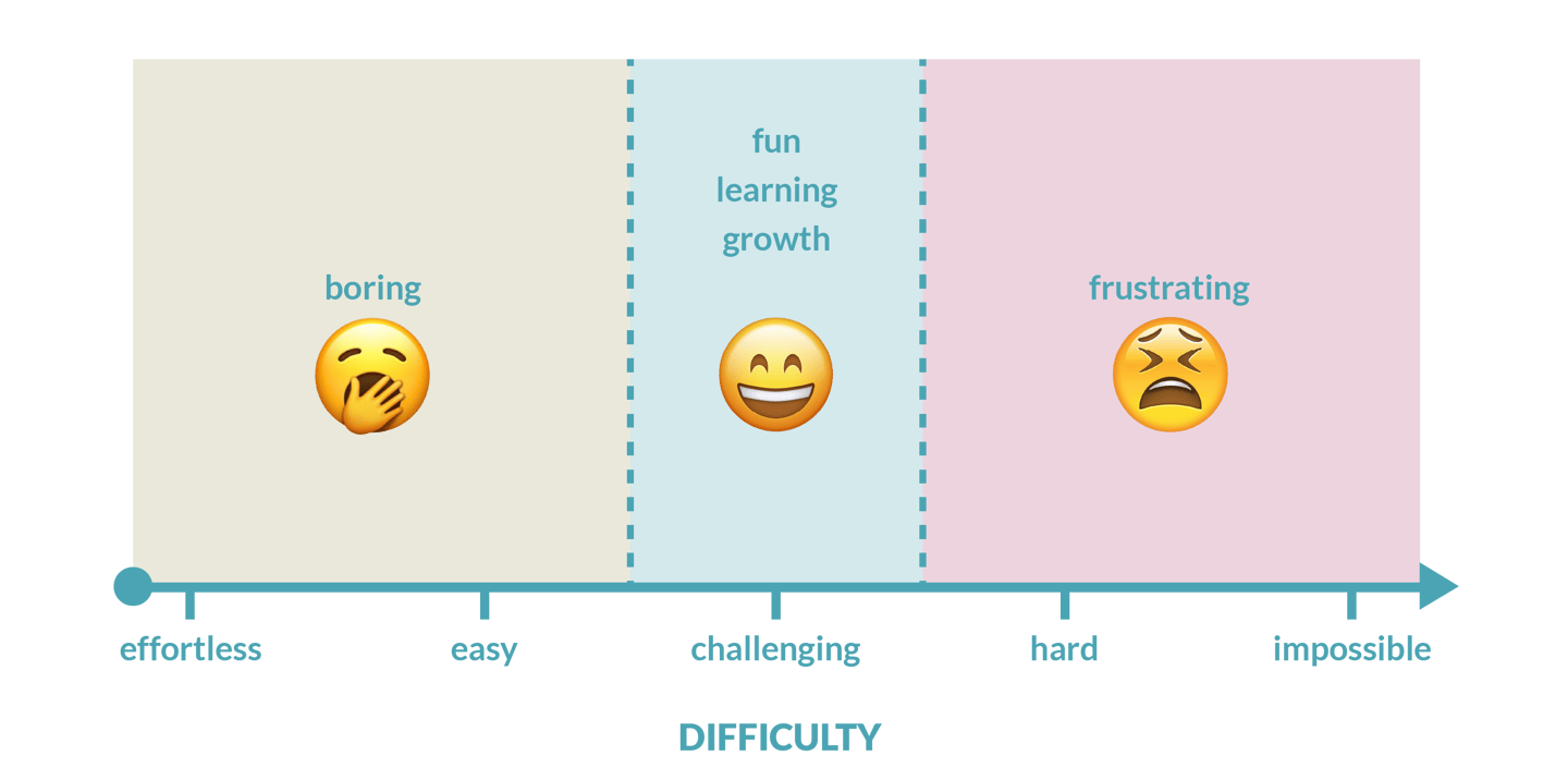 If a task is too easy it becomes boring. If a task is too hard it becomes frustrating. If a task is just challenging enough, it is engaging.