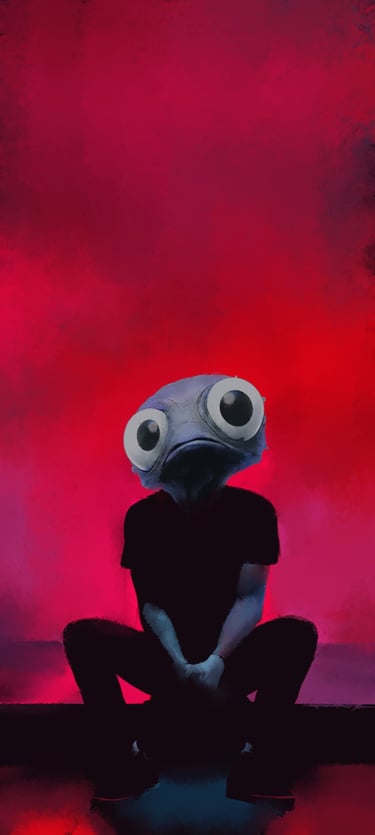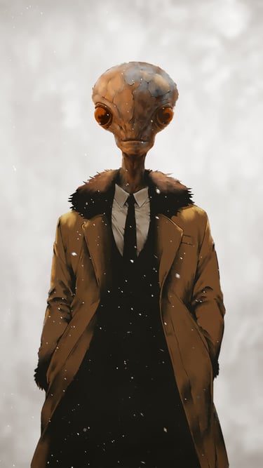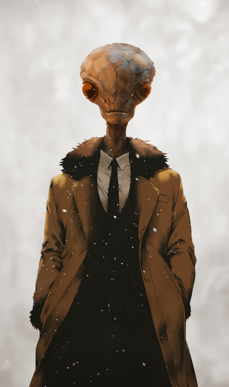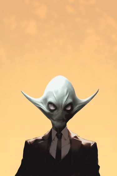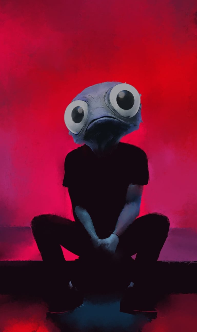 A series of digital paintings of extraterrestrials in human attire. A portrayal of feelings of being an outcast trying to fit in.