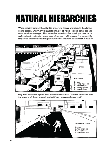 I go over the traffic laws as the government describes them, and contrast them with the patterns actually observed on the streets, finally arriving at the ‘spirit of law’, the natural order that underlies this chaotic manifestation.