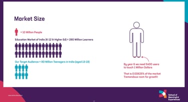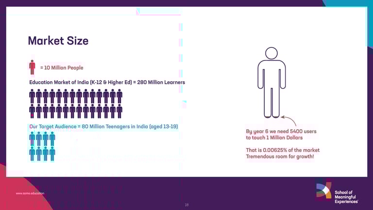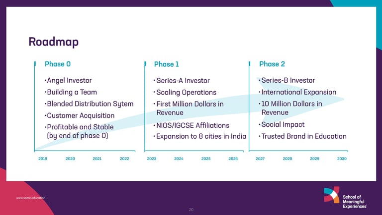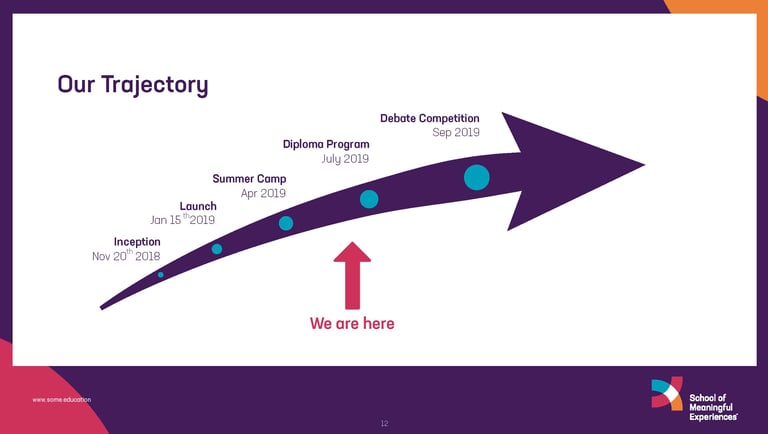 SoME (School of Meaningful Experiences) is a startup that conducts workshops to develop skills, with a focus on public speaking. They approached me to develop an investor pitch deck so they could secure funding to grow bigger.