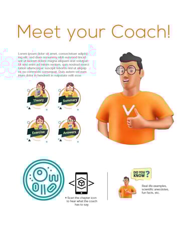 The first step in this project was going through the prescribed syllabus multiple times until I understood every single detail. Once I was confident with the material, I proceeded to categorize it according to type: Base content, Fun facts, Diagrams and captions, Tables, Quick questions, and additional content accessible through QR codes. The additional content was further divided into short videos that explained a concept, games that tested understanding of a concept, interactive diagrams and 3D models, and longform quizzes. Each of these needed their own icons and associated prominent colours.