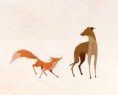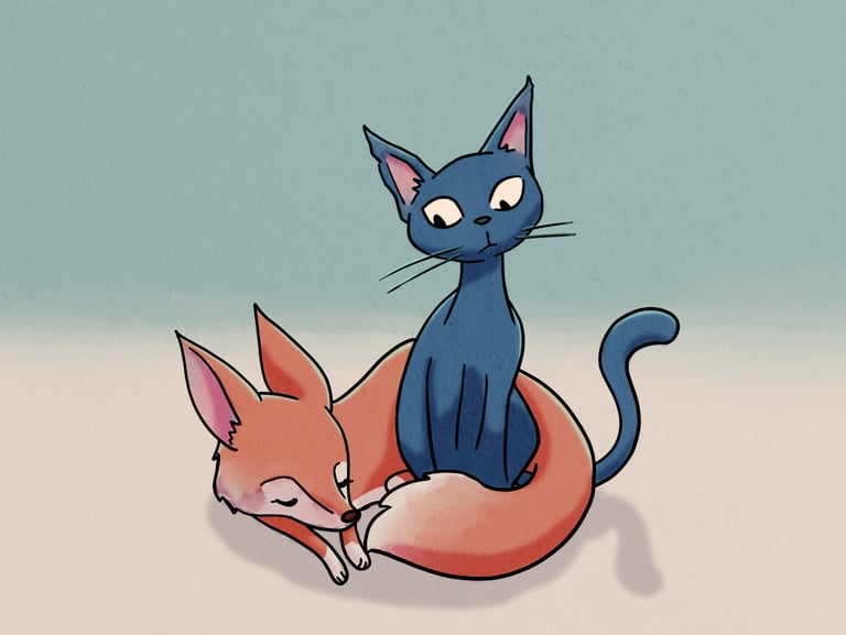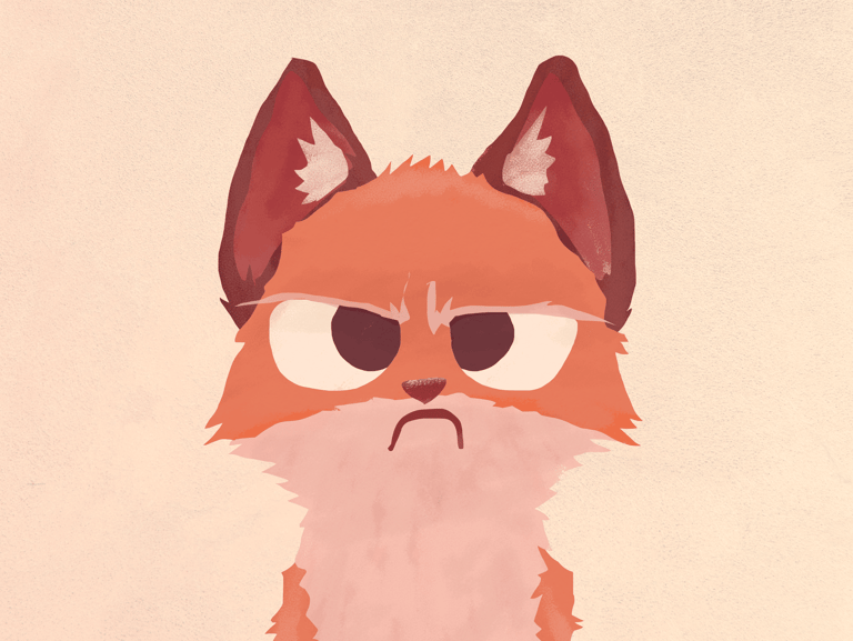 A series of digital paintings depicting foxes with stark personalities, experimenting with different styles.